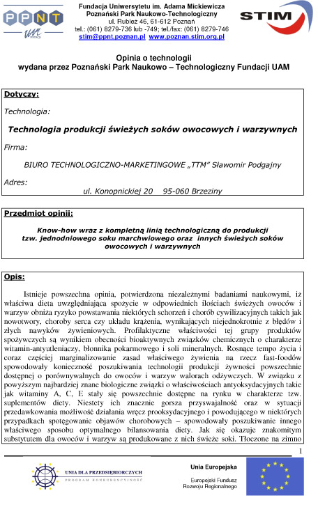 Technologia produkcji świeżych soków owocowych i warzywnych