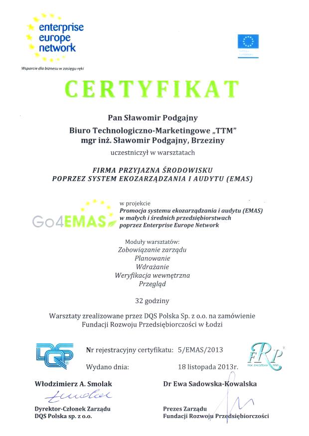 EMAS certyfikat warsztaty 2013