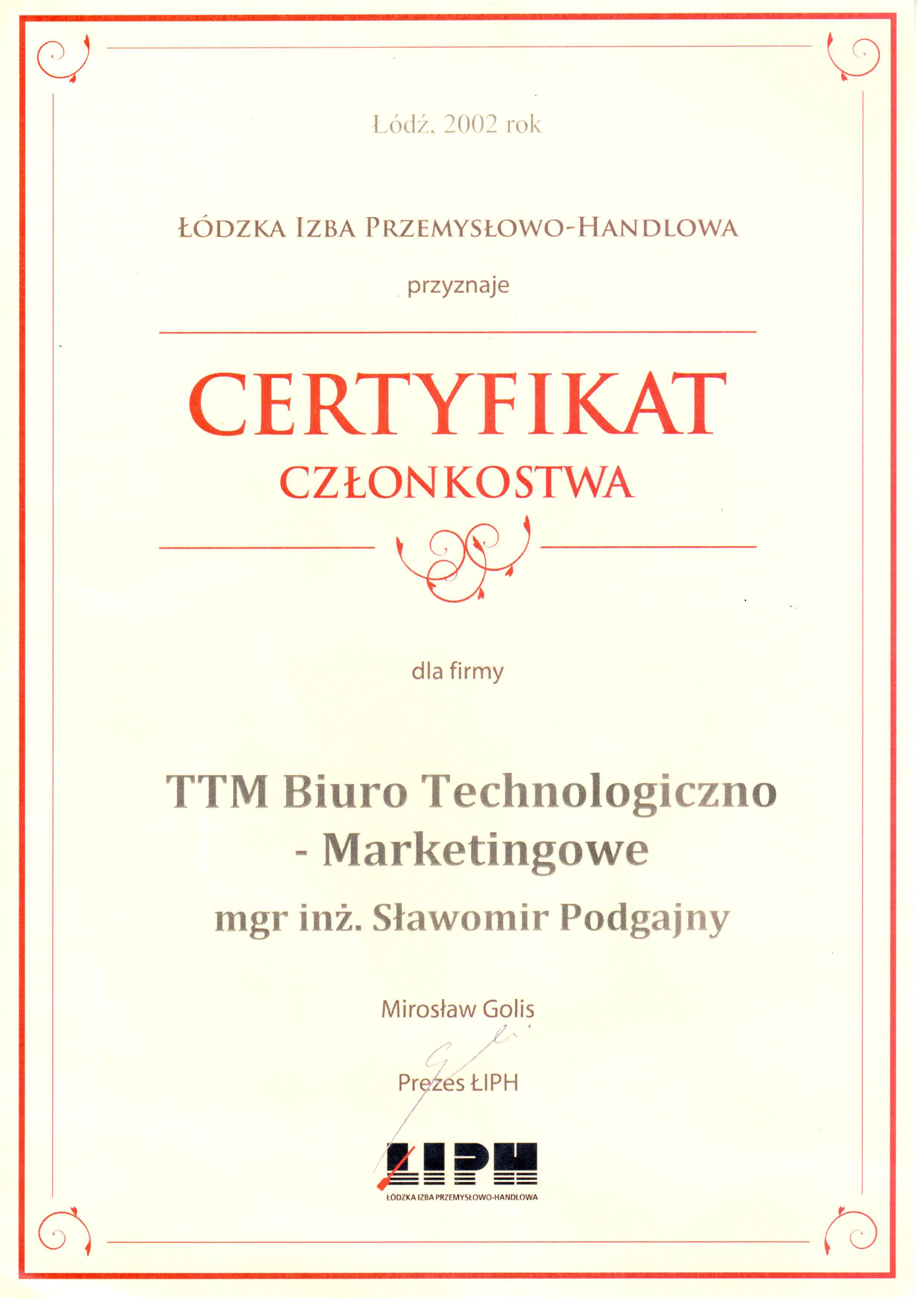 LIPH certyfikat 2014