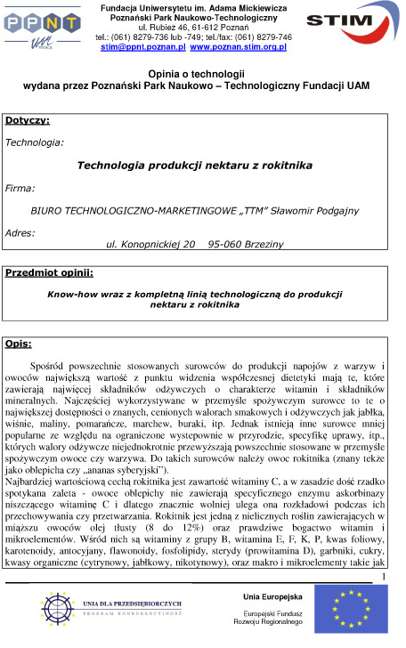 Technologia produkcji nektaru z rokitnika