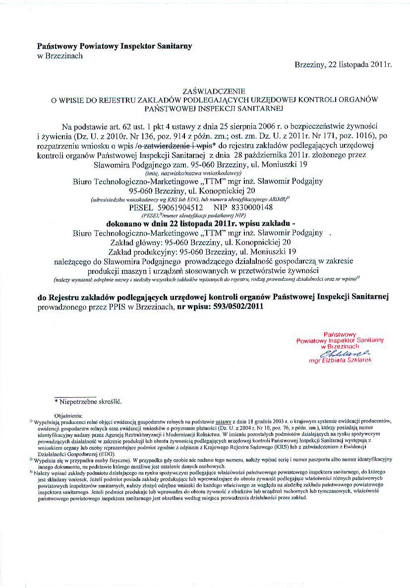 PIS wpis do rejestru zaświadczenie